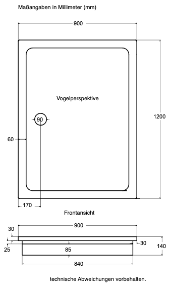 | Maße Duschwannen: | 120 x 90 cm |