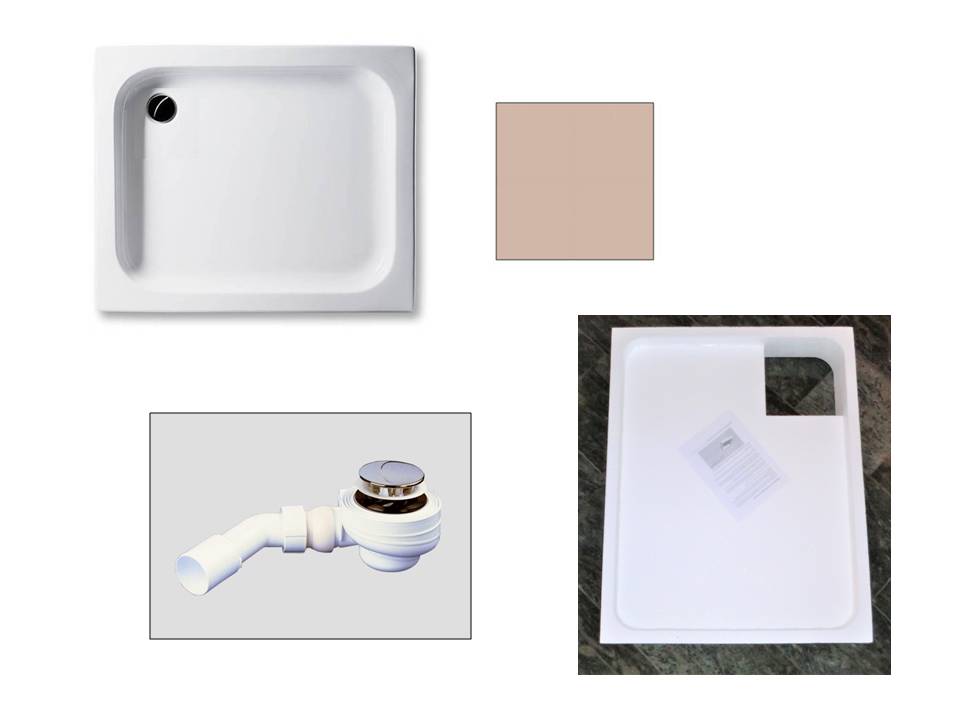 KOMPLETT-PAKET: Duschwanne 90 x 80 cm, Farbe: BAHAMABEIGE 15cm tief, Acryl + Styroporträger/Wannenträger + Ablaufgarnitur chrom DN 52