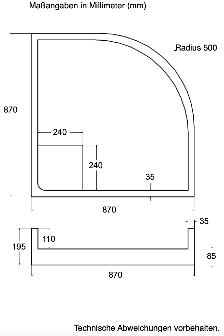 - für Viertelkreis-Duschwannen, Radius wählbar (R50 oder R55)